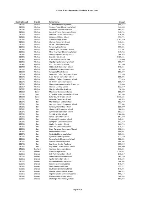2007 List Of Recognized Schools Florida Department Of Education